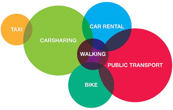 汽车共享填补了公共交通与私人交通之间的断层,可视为公共交通系统向私家汽车的过渡:若长距离出行,可以选择私家车、飞机、火车;若短距离出行,可以步行、骑自行车或者乘出租车;但若是中等距离出行,甚至是通勤线路,人们就可以驾驶共享汽车出行。